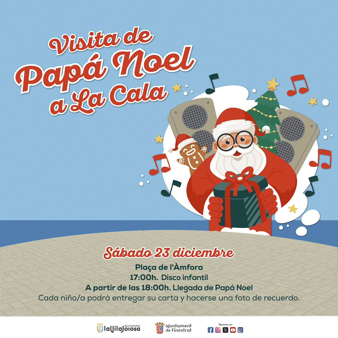 The Councilor for Festivals, Sara Llorca, stated that “after passing through our Christmas Market in the traditional historic center, Santa Claus makes a stop at our Cove, on the seashore. It will be in Plaça de l'Àmfora where the little ones will have a new opportunity to deliver their letter of wishes, take souvenir photographs and live a pleasant afternoon of excitement and fantasy on our beach.”