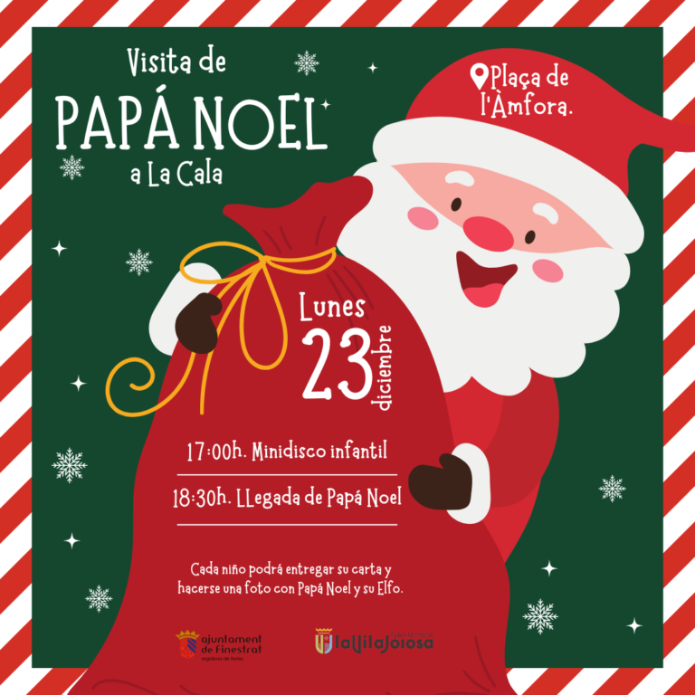 After Santa Claus's visit to the historic center of Finestrat, within the framework of the Christmas Market, La Cala prepares to welcome him. It will be this Saturday, December 23 at Plaça de l'Àmfora.