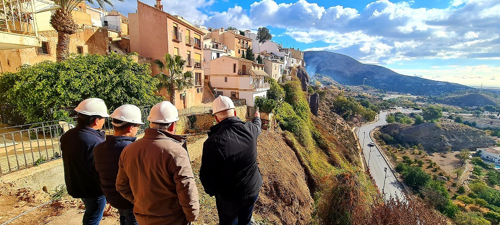 Convert one of the icons of the historic centre of Finestrat into a completely renovated space for leisure and enjoyment of neighbors and visitors. This is La Penya on which the hanging houses of the historic center sit. There, the slope consolidation works have begun, an action that is financed by Next Generation EU European funds. The mayor, Juanfran Pérez Llorca, visited the area together with the Councilor for Works and Projects, Guillermo Lloret, the Councilor for European Funds, Héctor Baldó, and the municipal Urban Planning technicians.
