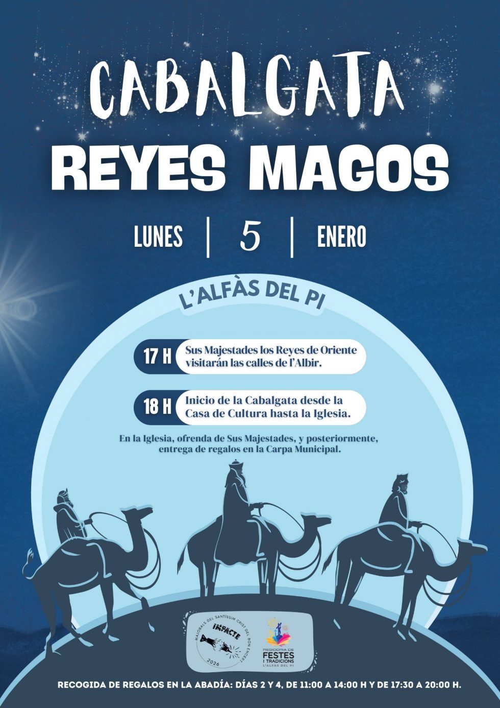 Their Majesties Melchior, Gaspar and Balthazar will begin their journey through the streets of Albir at 5:00 pm, before arriving at the House of Culture at approximately 6:00 pm. The event is being organised by the Jubilee and Holy Christ of Good Fortune 2026 festival committee, in coordination with the Festivals Department of l’Alfàs del Pi Town Hall.
