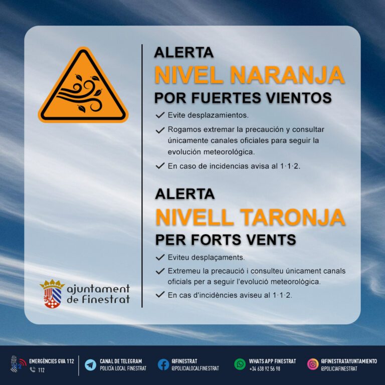 The Mayor of Finestrat, Nati Algado, chaired a meeting this morning of CECOPAL (Municipal Operational Coordination Centre) to organise preventative measures in response to forecasts of strong wind gusts today and over the weekend.